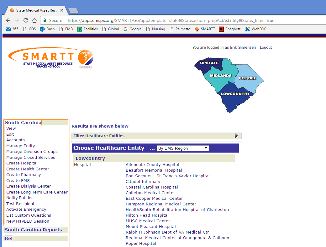 Facilitated individual interviews then focus group with state-level (DHEC) and hospital-level (SCHA) stakeholders to identify problems with existing system. I worked with our SCEMD liaison and engineer to define requirements and develop plan, approved by the stakeholders. The following needed to be accounted for: