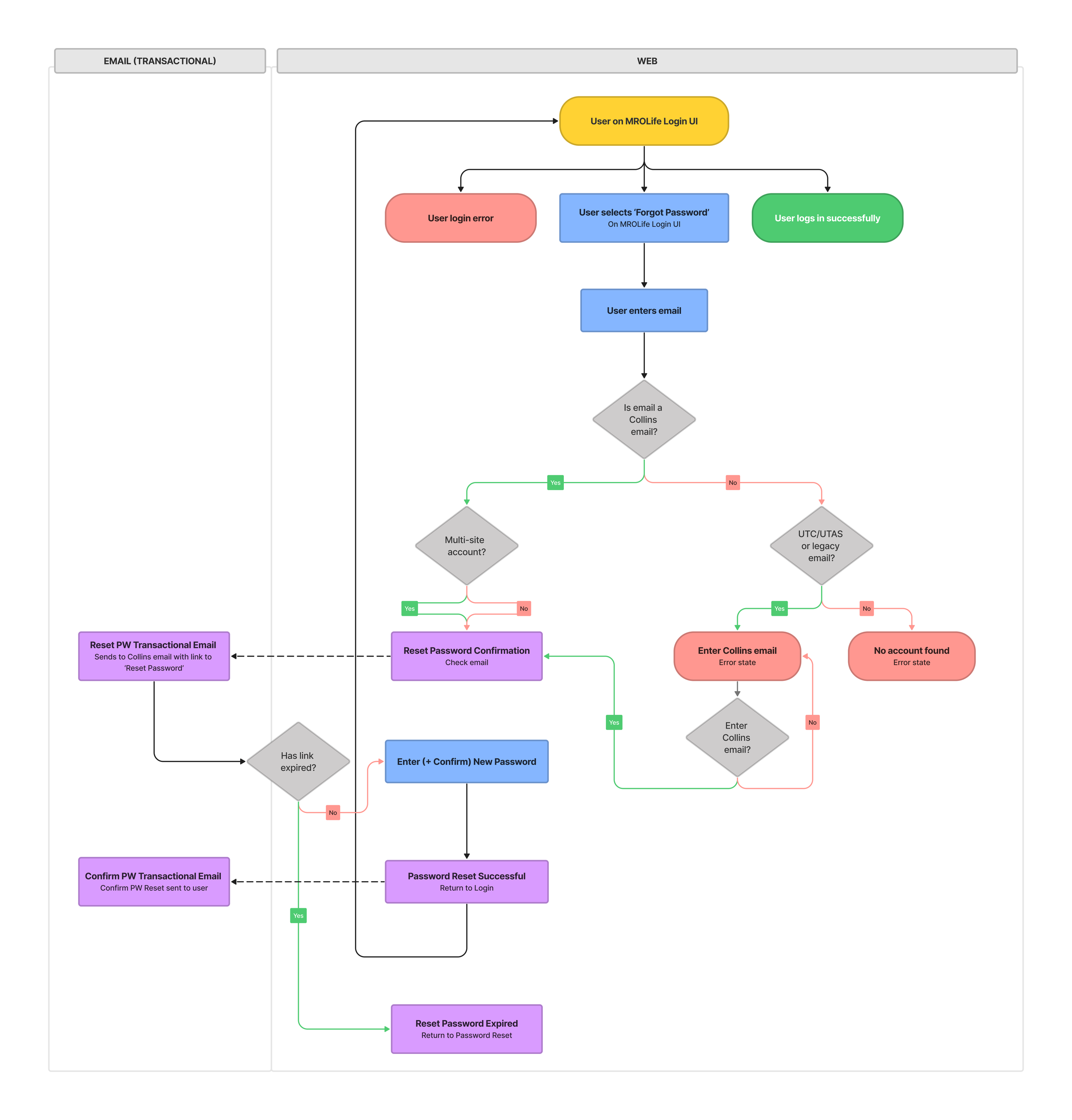 New Password Reset flow is fully automated process for user (automated steps shown with purple blocks)