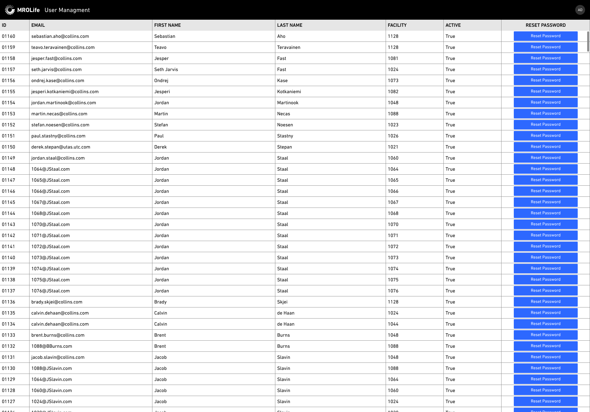 What originally started as ‘Forgot Password’ became so much more. Resetting user passwords in MROLife (an internal Collins SAP-based system to track and schedule Maintenance, Repair, and Overhaul of aircraft across the network in real-time) required manual reset by admin. This infrastructure was a threat across a global user base as Western Hemisphere users had to wait hours until admin was on clock, keeping users locked out from the system. We developed automated processes to save valuable time for admin and user. This streamlining effort would provide further gains aside from ‘faster passwords’ across the network and eventually the coveted multi-site access.