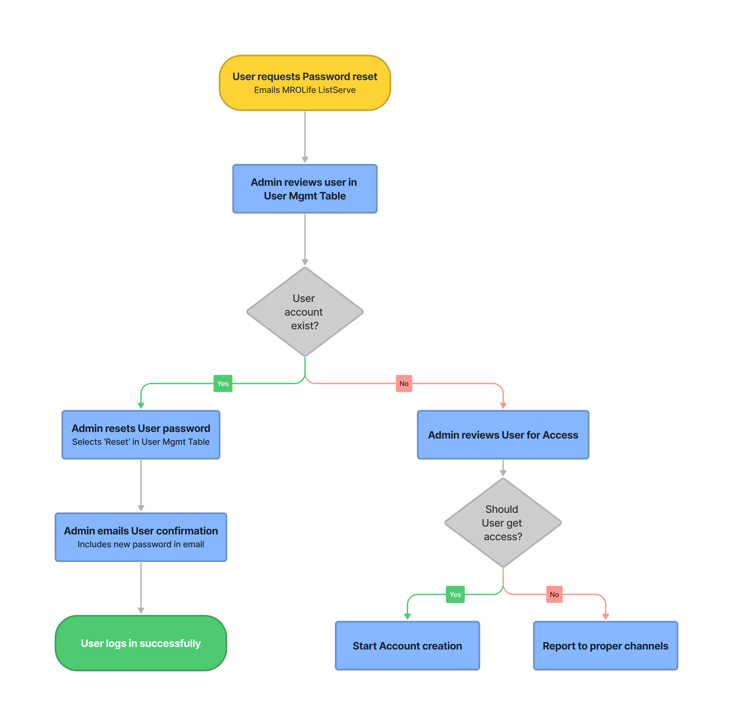 Current Password Reset flow is a completely manual process (manual processes shown with blue blocks)
