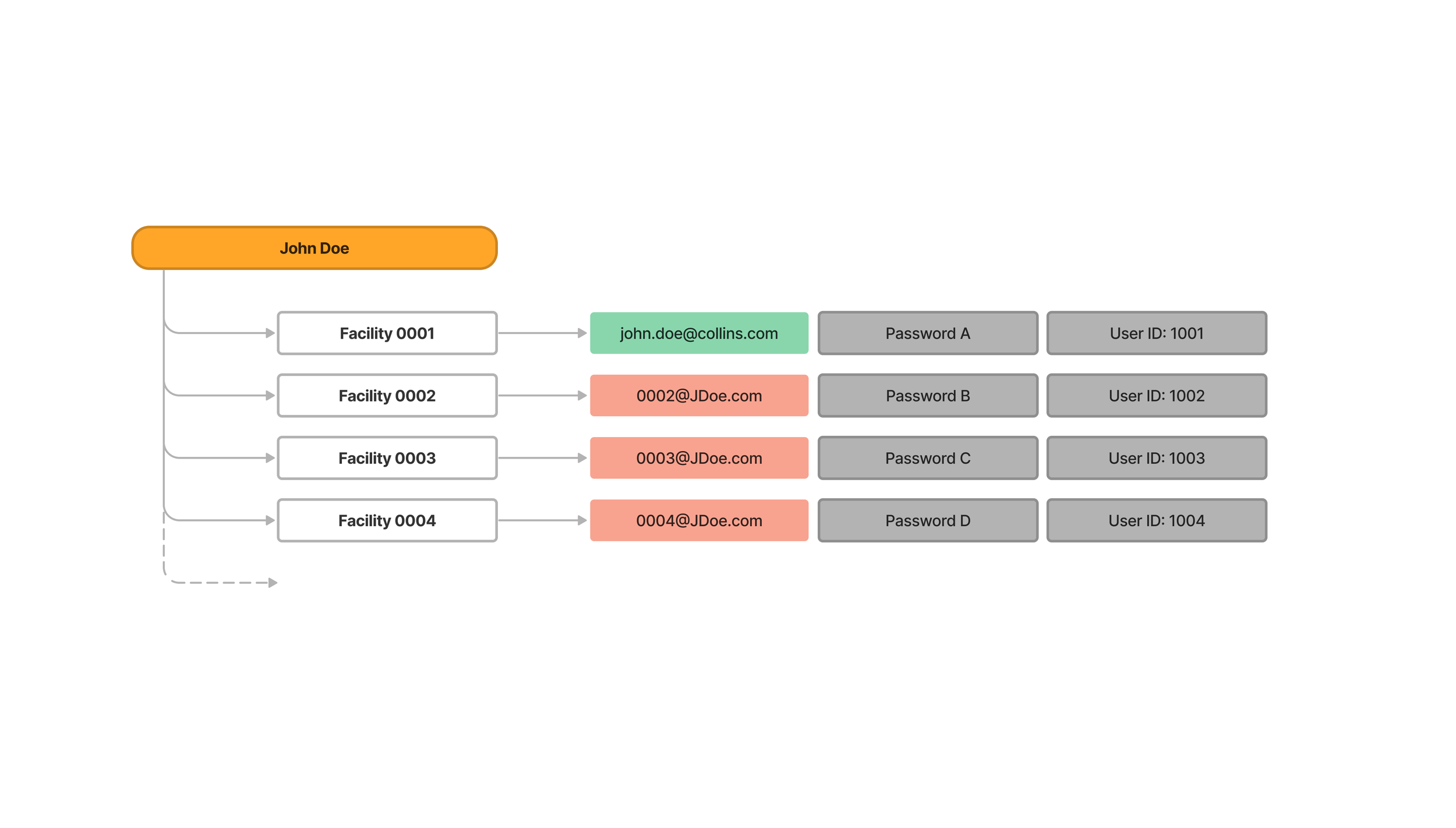 The previous multi-facility account infrastructure was flawed—users with multi-facility access had individual credentials for each site (many had dozens of sites)